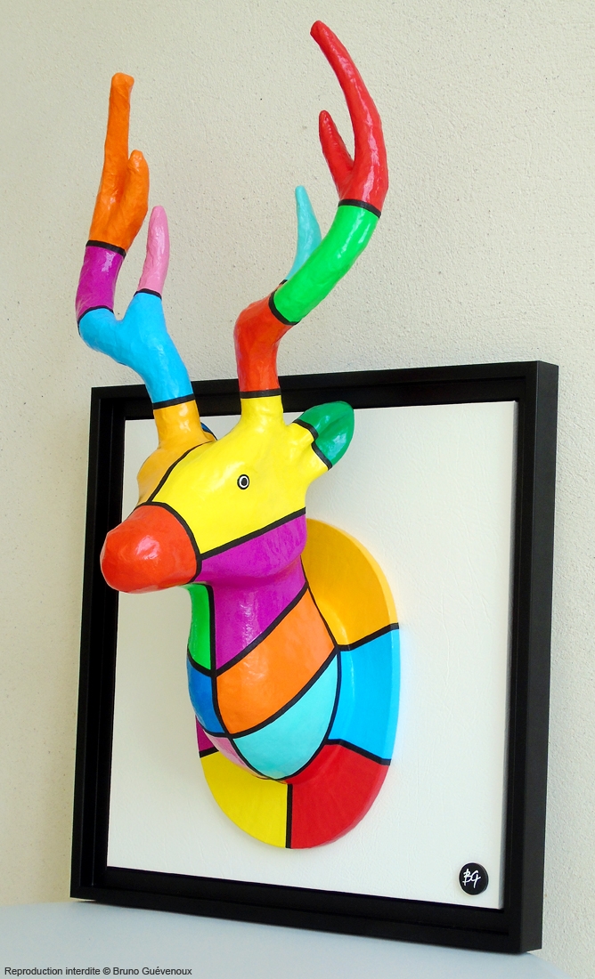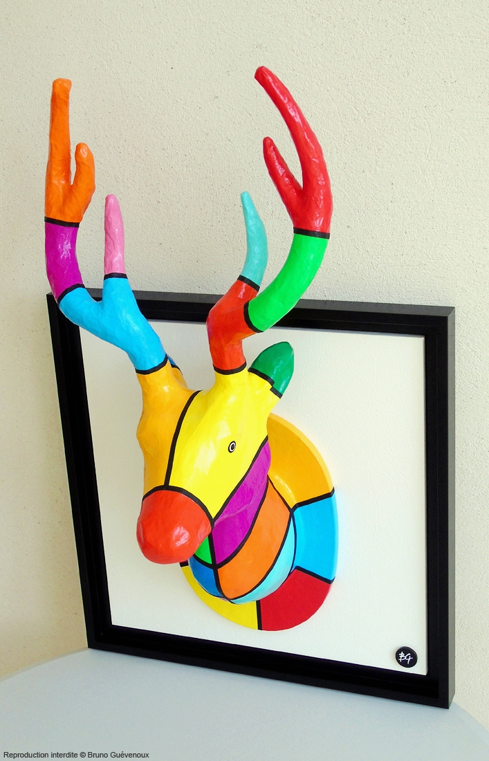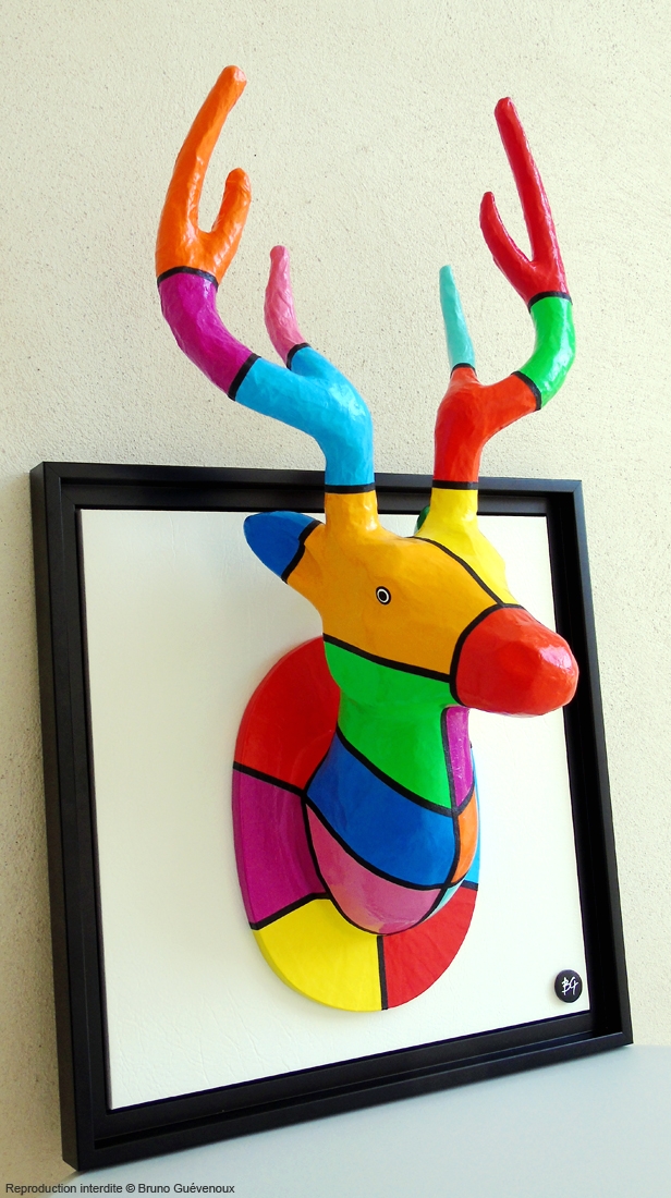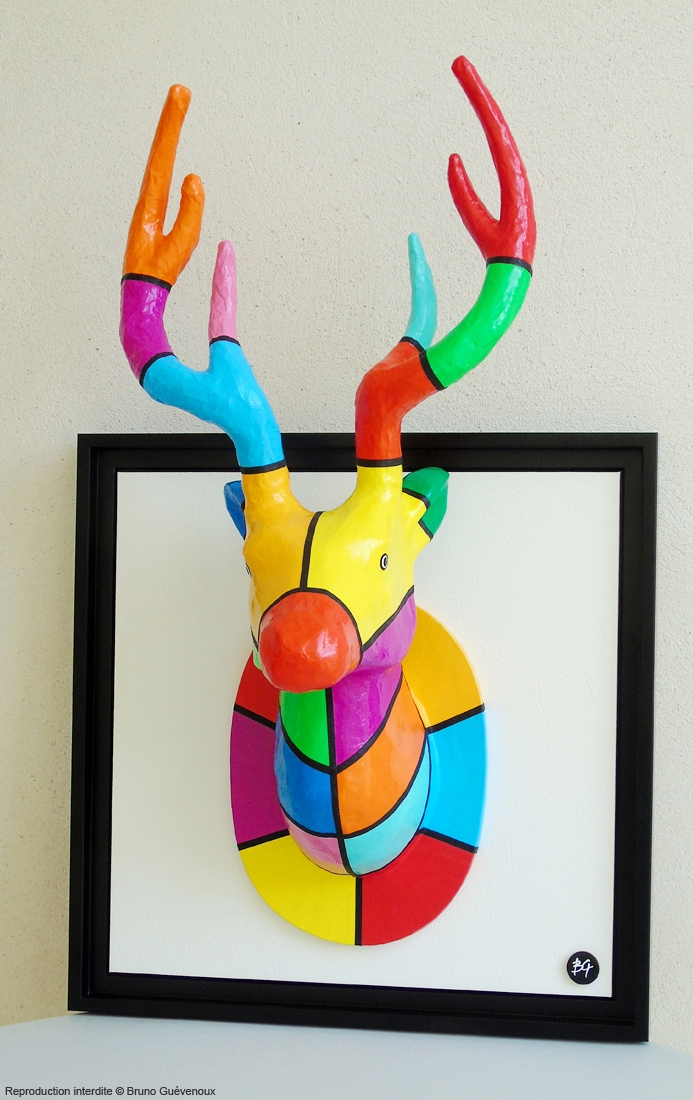 Support : Bois, Papier mâché, Peinture acrylique, Résine…