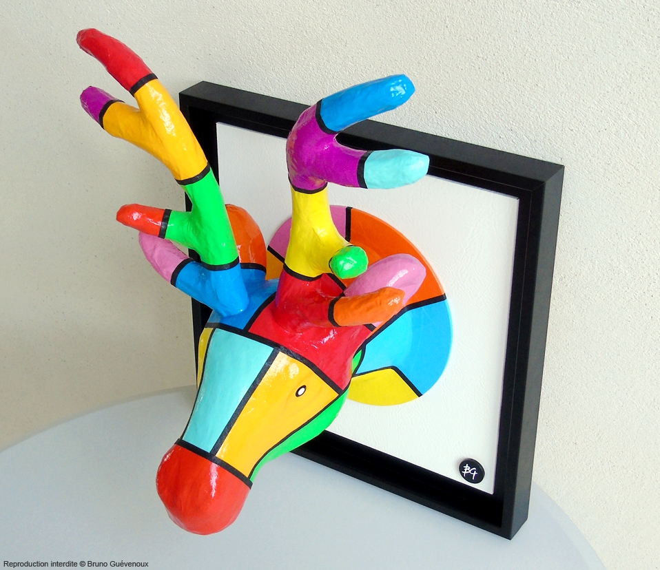 Support : Bois, Papier mâché, Peinture acrylique, Résine…