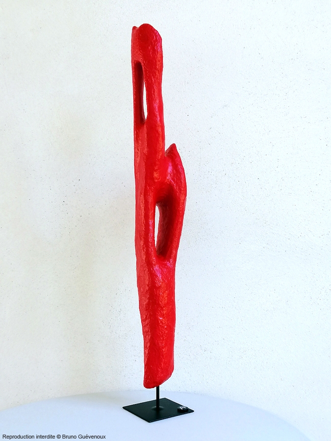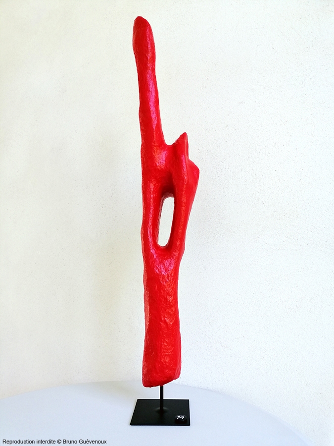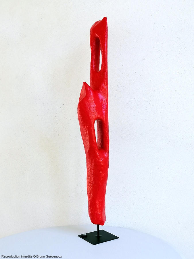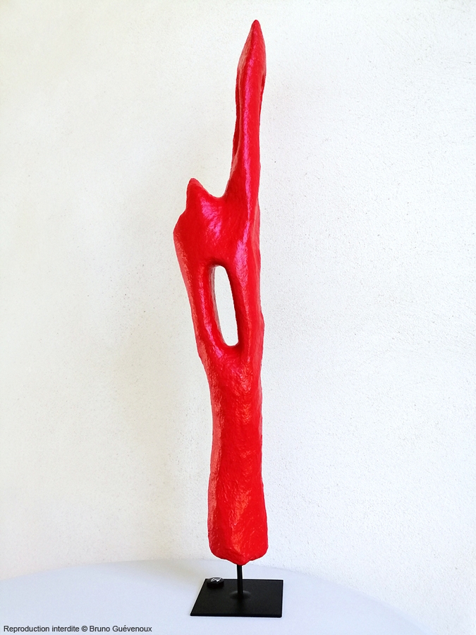 Support : Bois flotté sculpté, résine, papier mâché, peinture acrylique Technique : Mixte Hauteur : 90 cm Poids : 1,9 kg