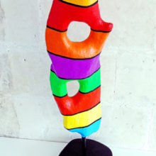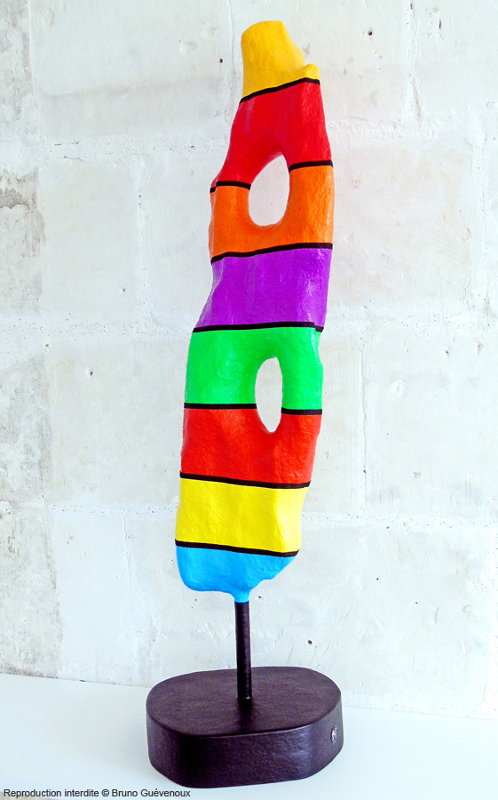 Support : Matière spécifique créée à base de bois, de résine, de papier mâché, de peinture acrylique et de vernis…
